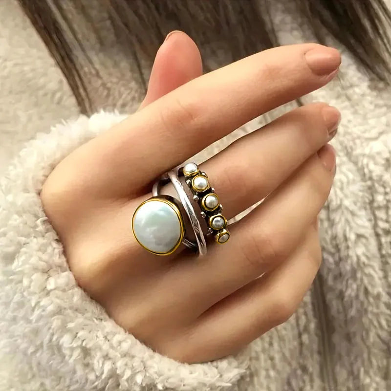 Unique Gold Pearl Ring Bridal Wedding Jewelry Finger Accessories for Engagement